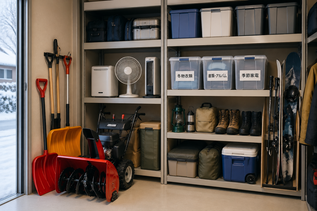 | 季節家電・衣類の保管 | 扇風機、ヒーター、こたつ、ダウンジャケットなど | 屋内型 | 空調管理でカビ・湿気対策に◎ |
